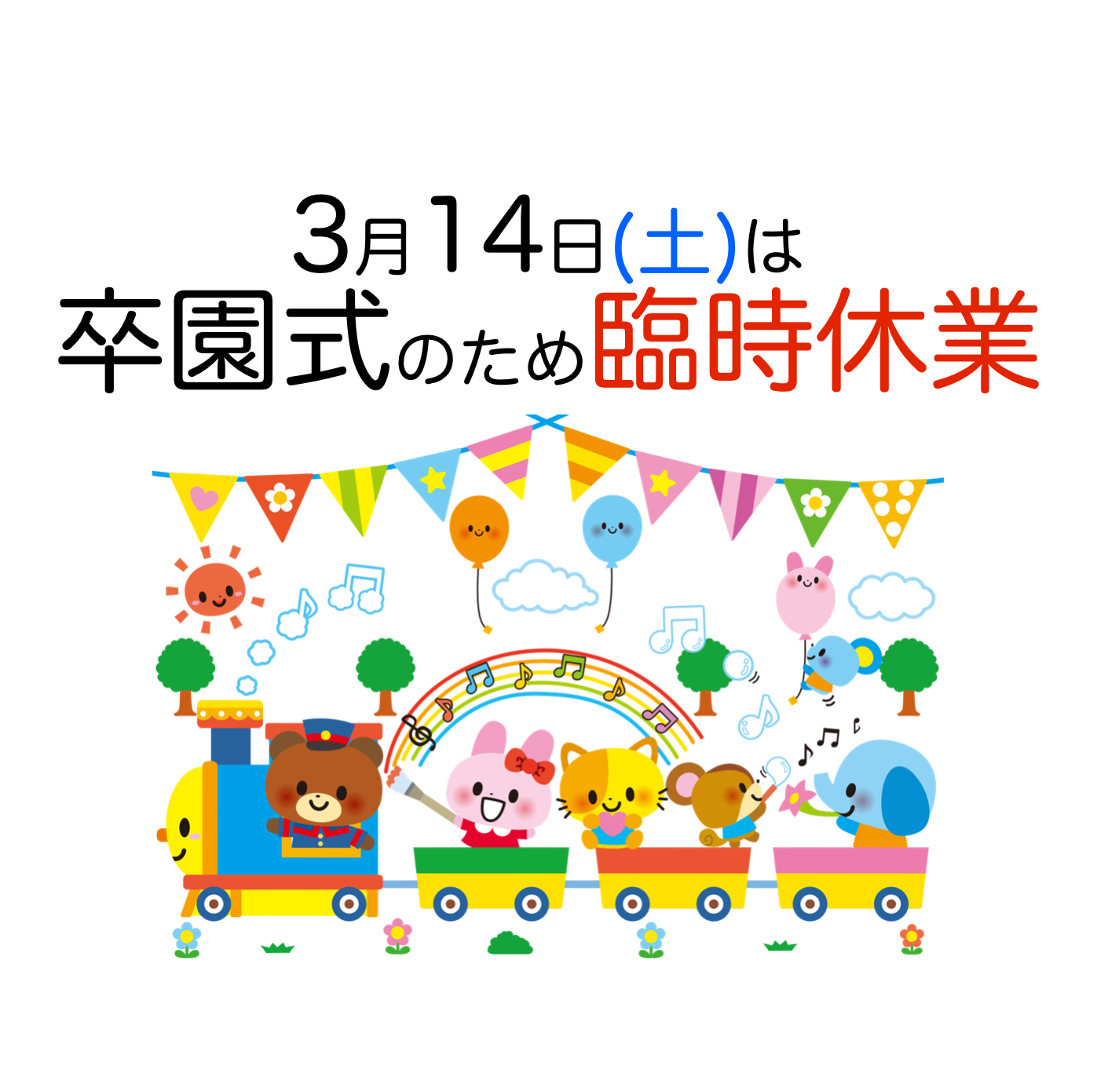 3月14日(土)は、卒園式参加のため臨時休業とします。